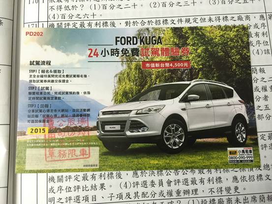 一聽到FORD又開有24小時免費試乘後就趕快去拿試乘卷。